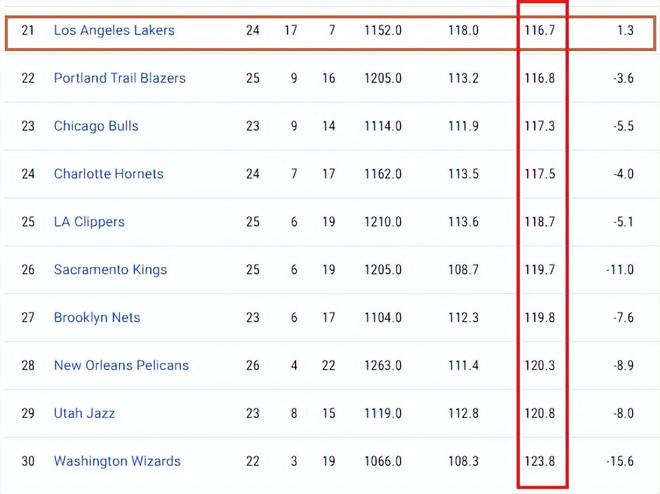 防守端的表现如此糟糕,湖人谈何争冠?相比之下,雷霆防守效率103.3在全联盟断档排名第一。火箭防守效率111.0排名联盟第三。上赛季雷霆夺冠,防守是他们的重要武器。上赛季雷霆防守效率106.6已经是联盟第一。本赛季雷霆的防守变得更加出色。