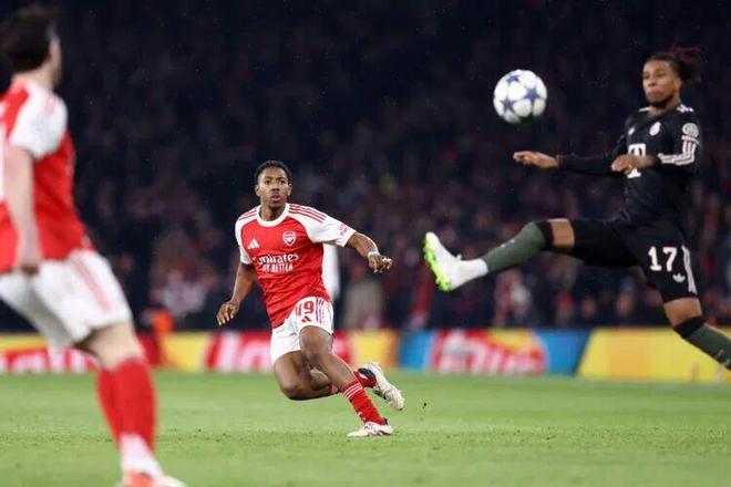 更可怕的是,这一切还是在枪手远非满血状态下完成的。没有加布里埃尔?没事,廷伯角球照样顶进。没有正印9号?别怕,米克尔·梅里诺能串联一切。没有厄德高?埃泽照样把节奏拿捏得死死的——北伦敦德比刚戴帽,欧冠赛场又送助攻。