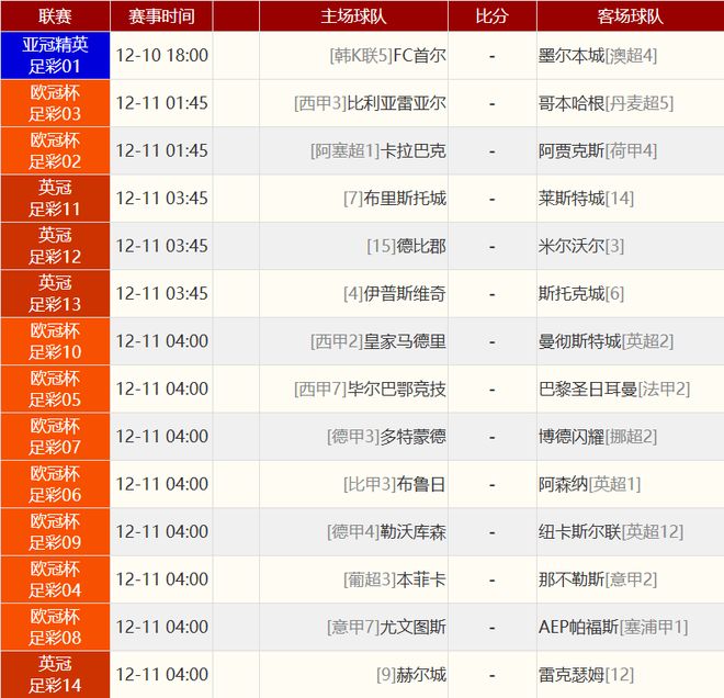其他赛事比分: