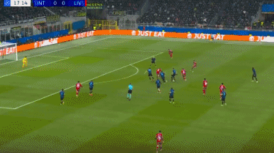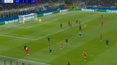上半场补时第6分钟,巴斯托尼左路传中,落点恰到好处,劳塔罗力压范戴克头槌攻门,阿利松回敬精彩扑救,利物浦险些压哨丢球。