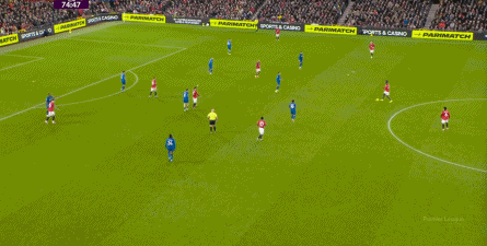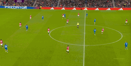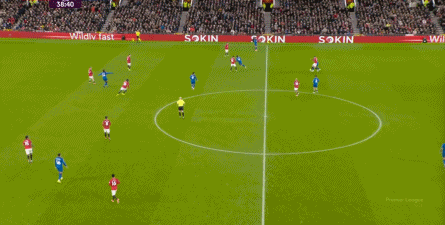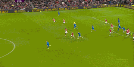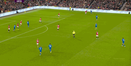 这几次防守,随着中场区域的常规掉线,后卫线开始感受到了压力,这是343体系本该最为强悍的地方,到了他们该顶上来的时候了,但这刚好是曼联最为薄弱的地方。