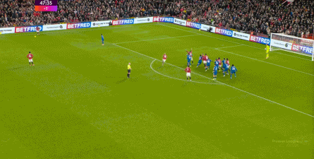 于是在卢克-肖这次前插之后的连续定位球机会中,卡塞米罗打进了第二球: