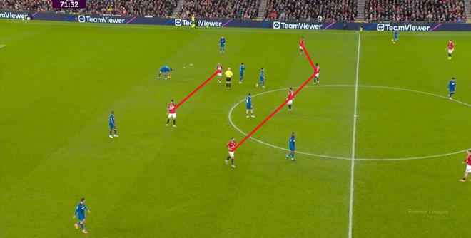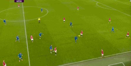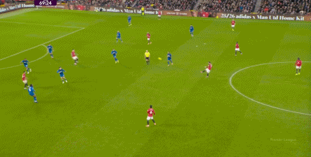 所以在第70分钟这次进攻当中,除了姆贝乌莫在后点打高,曼联的场上优势已经很清晰了,就看能不能抓住浮现的机会了: