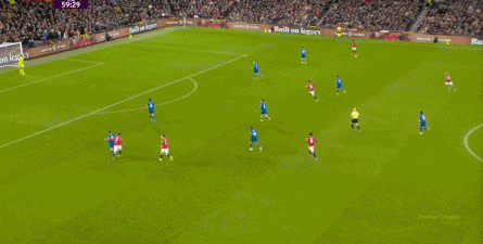 实际上在丢掉第四球之前的2分钟,伯恩茅斯已经显现了对曼联这套新结构的冲击能力和效果: